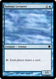 I love the mechanic of the card, but I'm not really sure how it fits into the vision from a flavor perspective (other than having teacher in its name). Maybe a teacher conjures his double so he can get back to his scholarship without having to deal with idiot students.